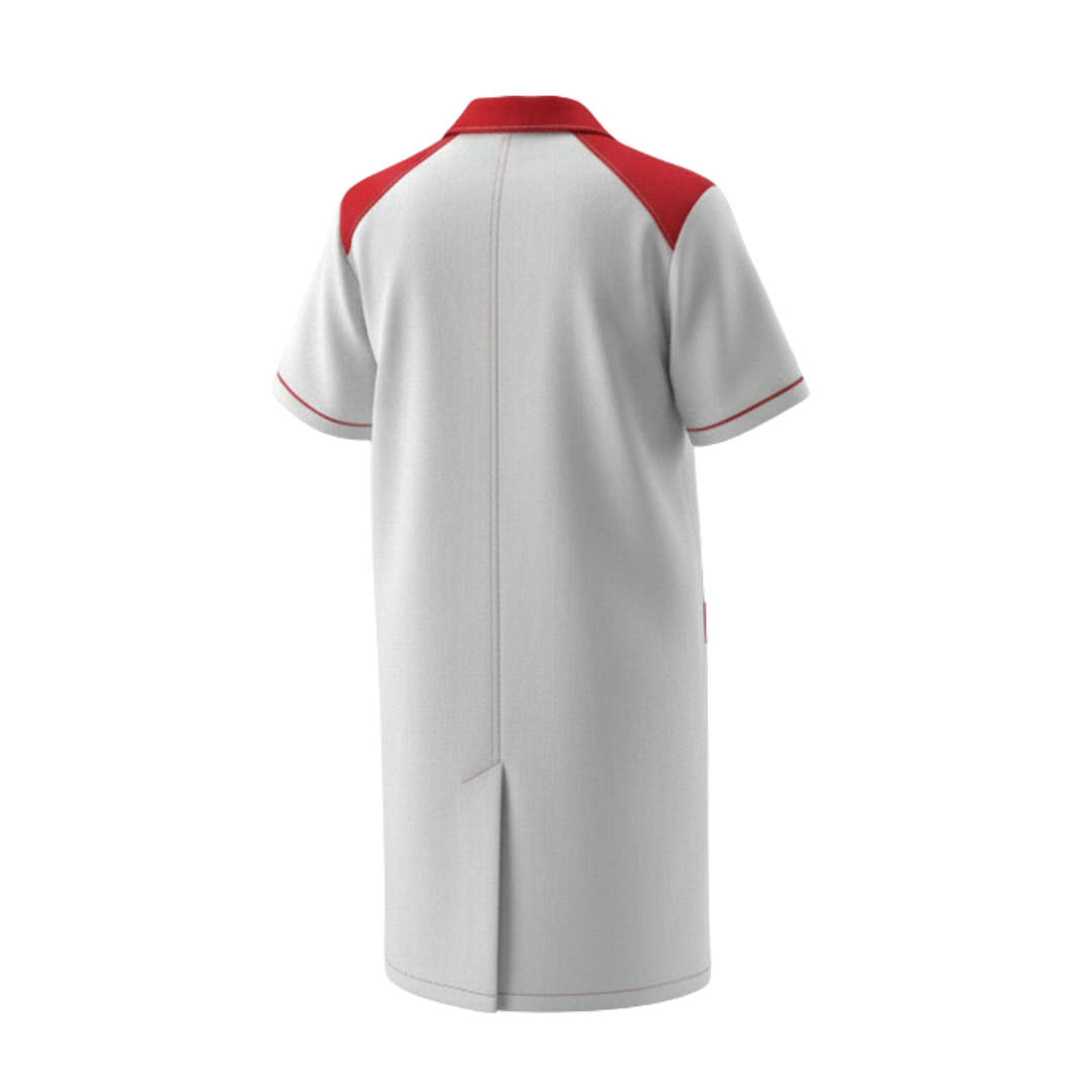 Blouse boucherie (Blanc/Rouge)/ une blouse de travail classique, alliant simplicité et polyvalence.