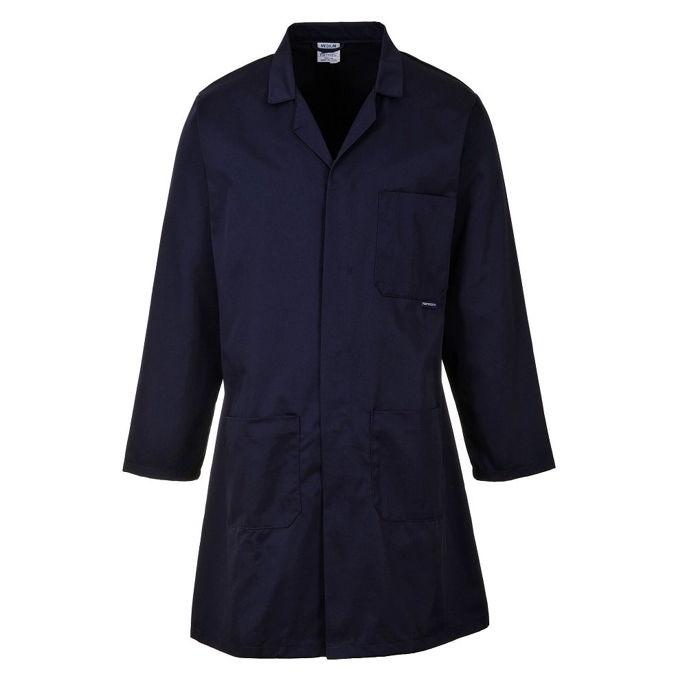 Cette blouse 100% coton antiretrécissement à fermeture pressions possède 2 poches basses et une poche poitrine.